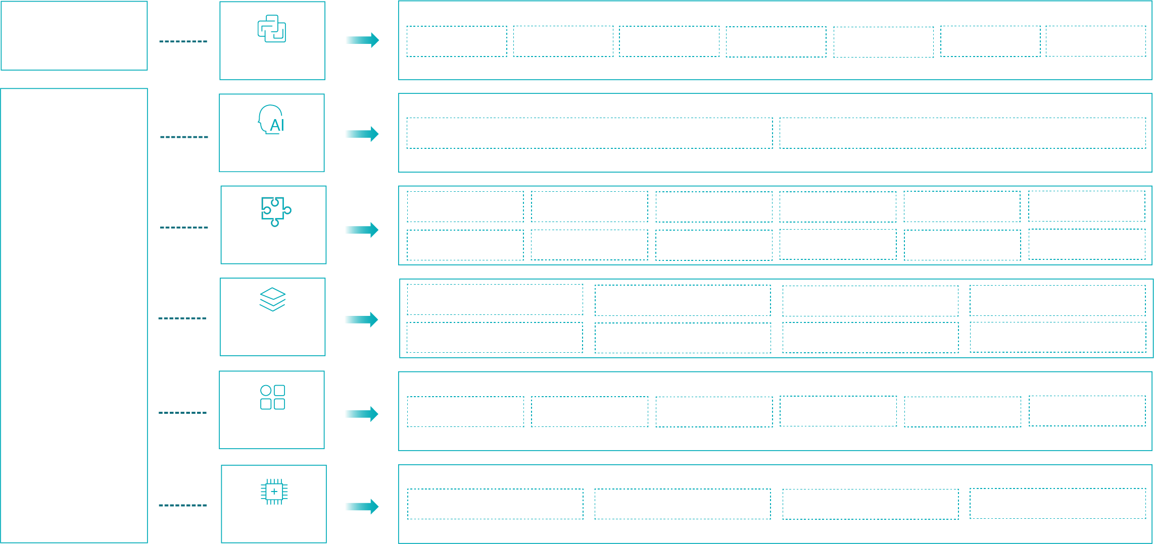 运营商的AI建设基于服务多种类型、多个用户的AI应用场景的要求,结合既存平台的能力现状,着眼长期发展的需求,综合基础系统能力、技术能力、AI服务开放、AI开发运维等核心要素,设计全面完整的AI云解决方案。同时,客户在不断引入不同AI应用的进程中,沉淀可复用的AI共性能力,降低AI应用投产的边际成本,实现全面AI赋能。