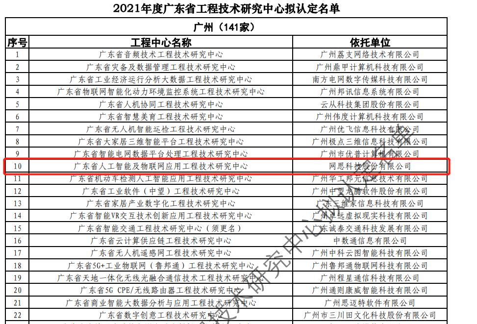 日前,广东省科技厅发布2021年度广东省工程技术研究中心名单。经过层层筛选、专家评审,依托乐鱼平台-乐鱼(中国)一站式服务平台 建设的“广东省人工智能及物联网应用工程技术研究中心”榜上有名。广东省工程技术研究中心主要依托省内行业、领域具有科技实力的、拥有一定规模以上创新型企业建设,部分依托高校和科研院所组建。工程中心旨在